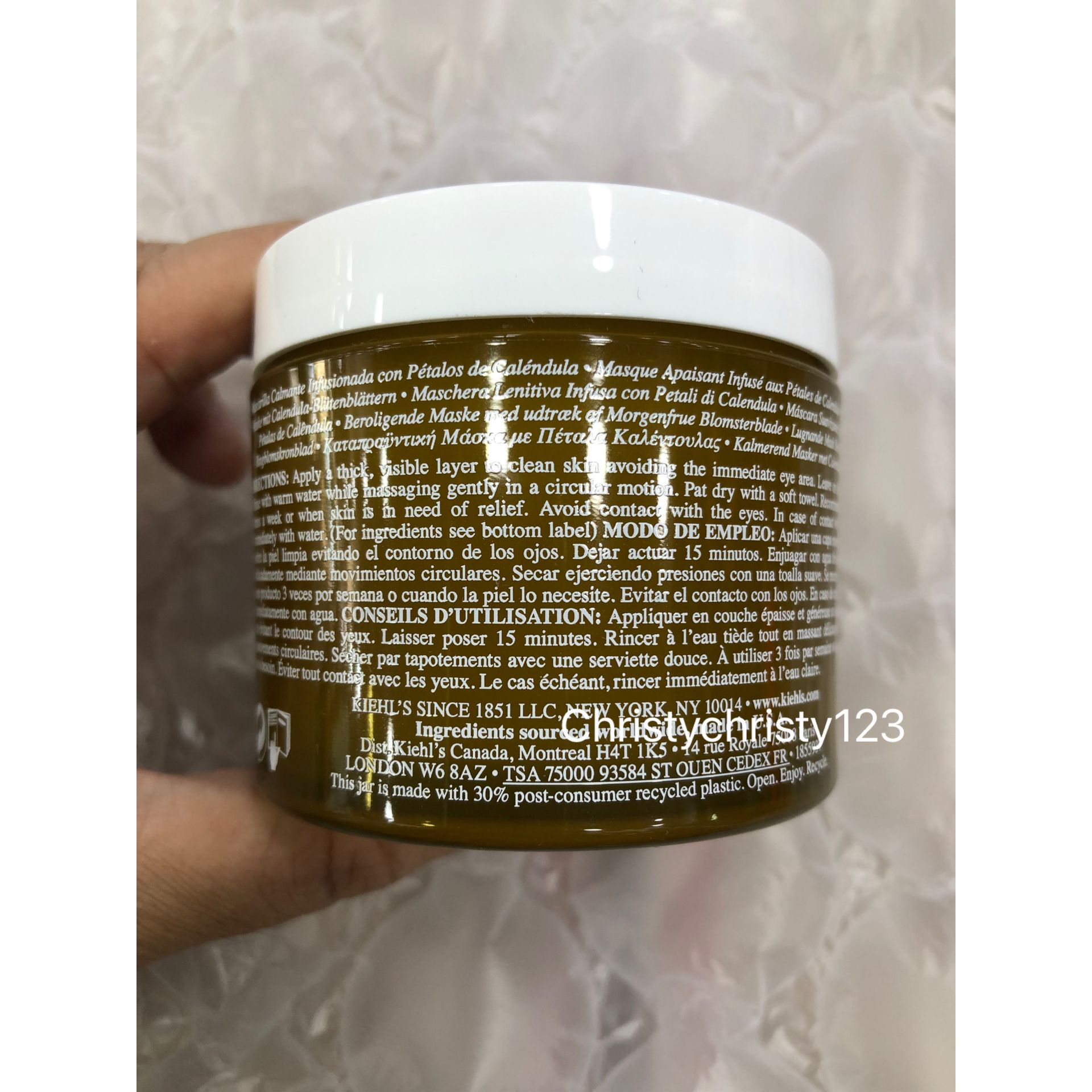 有效日期: 2025年 03月 產地 : 美國 (Made in U.S.A.) 品名 : Kiehl's 金盞花蘆薈鎮靜保濕凍膜 (Kiehl's Calendula Petal-Infused Skin-Calming Mask) 容量 : 100 ml 產品描述 : ** 升級版配方蘊含50%更多蘆薈精華及人手採摘的金盞花瓣,水凝霜狀質感瞬間發揮鎮靜紓緩、清涼保濕功效 ** 升級版! 即時降溫、紓緩、保濕肌膚的急救面膜 ** 特別針對泛紅、狀態不穩的肌膚,使用後肌膚肌膚變得更彈嫩細緻,透出水亮光澤 ** 含有金盞花精華, 自古以來金盞花被用作治療良藥,具有紓緩及抗炎功效,幫助傷口癒合和鎮定皮膚 ** 金盞花花瓣的活性植物成份是 Kiehl’s的標誌性成分,可減輕皮膚刺激,為皮膚提供5種重要的抗炎化合物 ** 新配方增加50%蘆薈精華 – 能即時鎮靜、紓緩及保濕肌膚,幫助提升肌膚儲水量,透出水亮光澤 ** 所有膚質適用 使用方法 : ** 每週使用3次: 護理 : 將一層保濕凍膜厚敷於於清潔過後的肌膚上,等候15分鐘,以各上打圈方式輕輕按摩後,用溫水沖淨拍乾 ** 妝前急救 : 化妝前於乾燥肌膚敷15分,即時補水,令妝容全日更貼服 ** 曬後紓緩 : 日曬後使用可加速修護、補水及紓緩,改善乾燥泛紅 🌟訂購產品前,歡迎 WhatsApp 6053 7862 或致電客服 2446 0981 查詢貨存,謝謝🙏 🌟