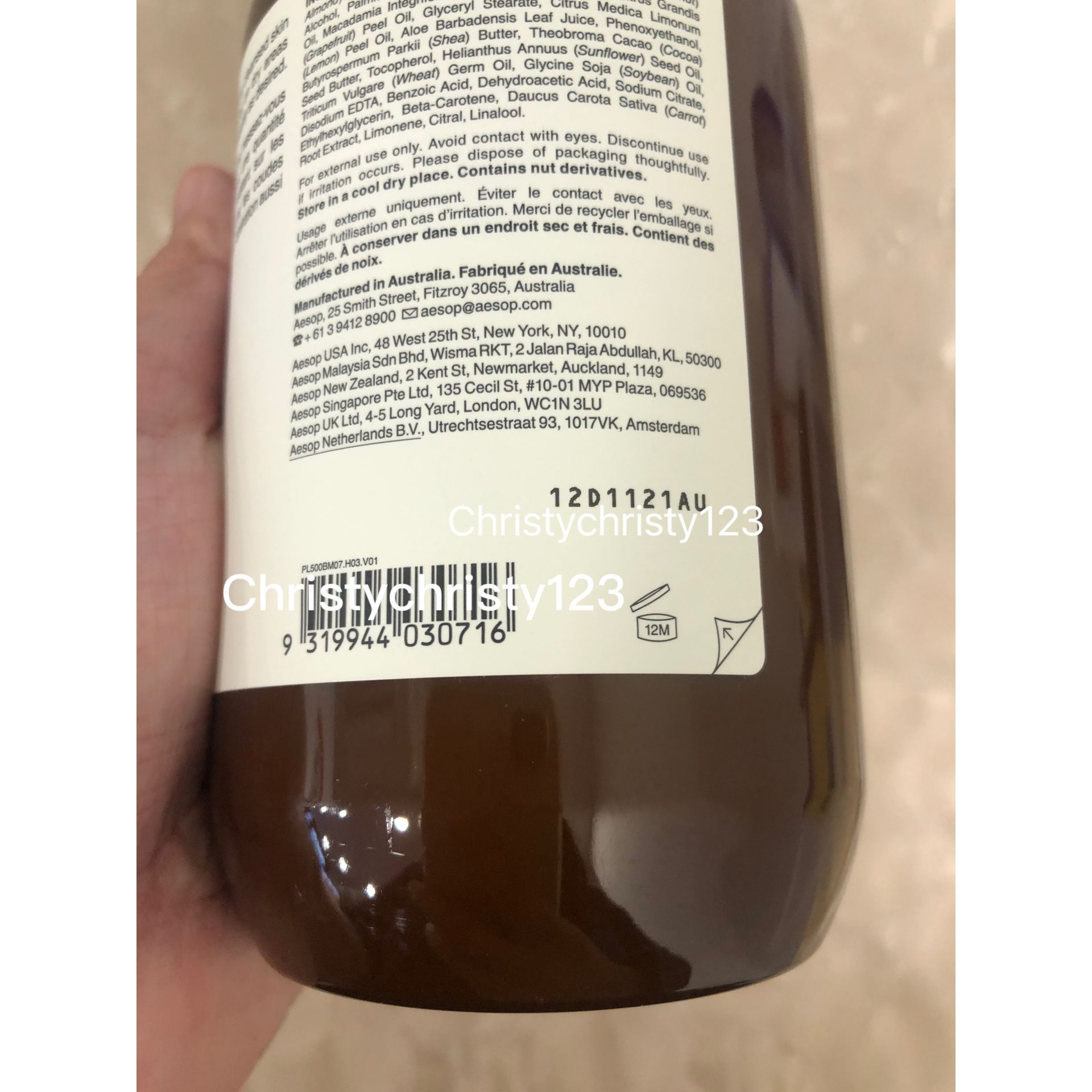 (大支 500ml) ~Aesop 橙香身體乳 (Aesop Rind Concentrate Body Balm) ~到期日: 2024年 11月