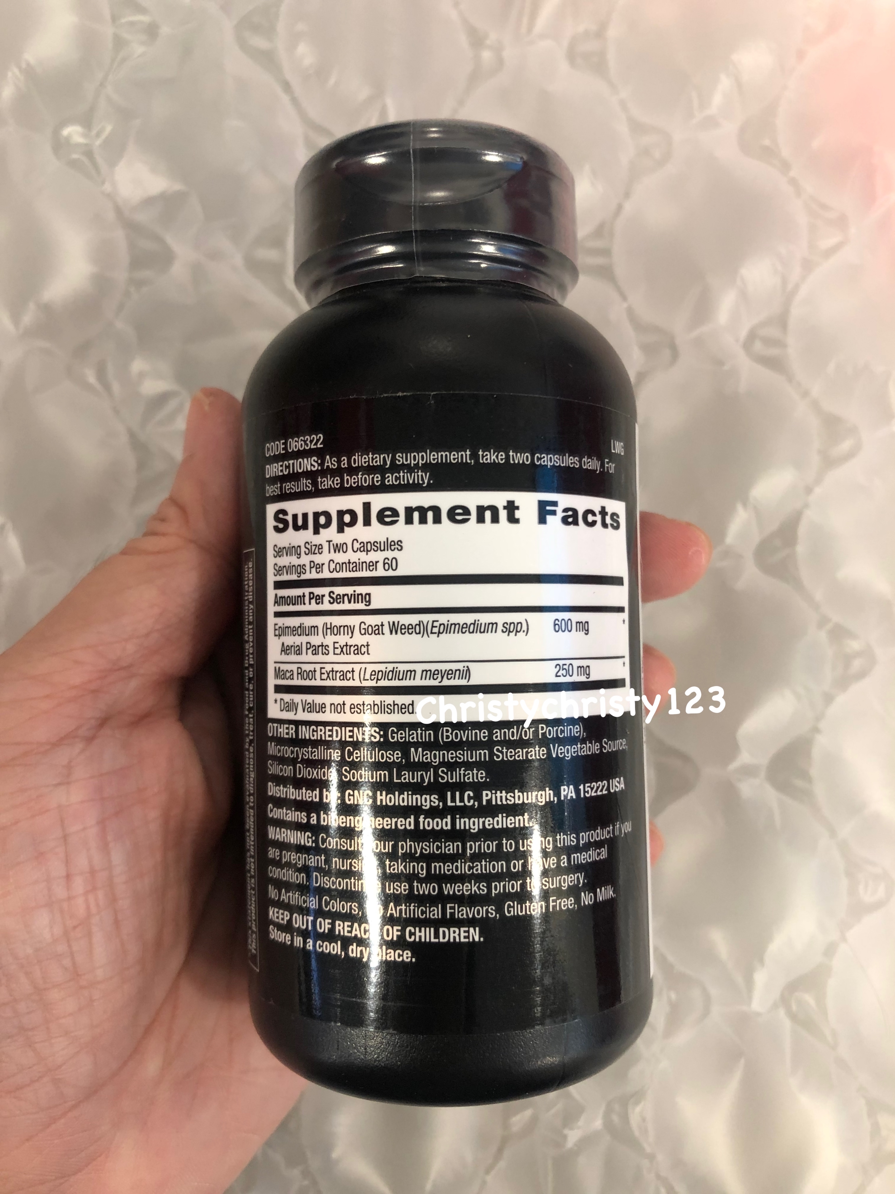 有效日期: 2027年 02月 產地 : 美國 (Made in U.S.A.) 品名 : GNC 男士角質山羊草 (GNC Men's Horny Goat Weed) 容量 : 120 粒 產品描述 : ** 每 2 粒含有 600 毫克角質山羊草及 250 毫克瑪卡提取物 ** HORNY GOAT WEED EXTRACT,可以通過多種機制如增加精液分泌和睾丸激素產生,增強精力 ** MACA EXTRACT 能幫助增加體力,增強耐力以及抵抗疲勞的力量,增強男性雄風 ** 可以增加男性睾丸(TESTIS)的成長,提高精力水平,加速運動後體力恢復 ** 有助增強男士精力及體魄 ** 有助男士耐力 ** 含豐富天然活力抗氧化劑或有助抗衰老 使用方法 : ** 作為膳食補充劑,每日服用 2粒膠囊。 為獲得最佳效果,請在活動前食用 🌟訂購產品前,歡迎 WhatsApp 6053 7862 或致電客服 2446 0981 查詢貨存,謝謝🙏 🌟