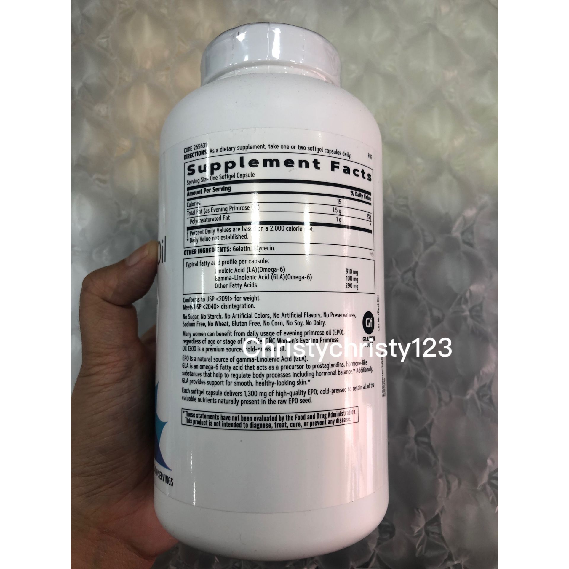 有效日期 : 2025年 06月 產地 : 美國 (Made in U.S.A.) 品名 : GNC 女士配方月見草油丸 1300MG (GNC Women's Evening Primrose Oil Softgels) 容量 : 180 粒 產品描述 : ** 月見草油具有緩解經期綜合症的作用,對於月經不調或者更前期的女士尤為有效 ** 減輕經前綜合徵和更年期不適,促進女性荷爾蒙自然生長和乳房健康 ** 調節皮脂代謝,改善皮膚失調,促進治癒濕疹和皮炎,增進皮膚健康 ** 消除風濕關節炎、結腸炎、胃炎等炎症 ** 降低血壓、排出細胞內的膽固醇、減少甘油三酯、血液膽固醇含量 使用方法 : ** 每日 1-2粒 随餐服用 🌟訂購產品前,歡迎 WhatsApp 6053 7862 或致電客服 2446 0981 查詢貨存,謝謝🙏 🌟