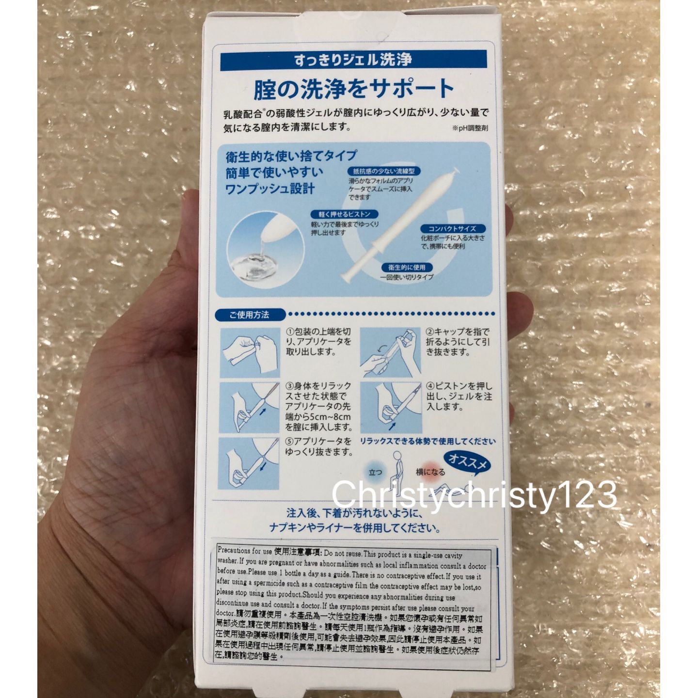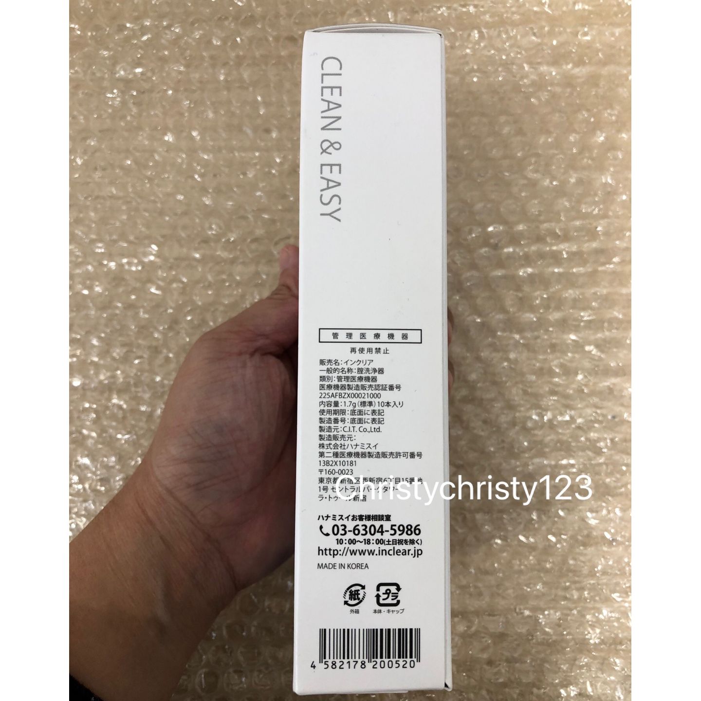 有效日期 : 2024年 06月 產地 : 日本 (Made in Japan) 品名 : inclear 女性私處乳酸菌護理清潔凝膠 容量 : 10 支 / 盒 產品描述 : ** 大多數婦科病都是由於菌類不平衡,PH值不正常造成的。inclear 正是針對這個問題而出品的,清潔內部,補充必須的乳酸菌,維持正常PH值,使女性遠離婦科病煩惱 ** 單支獨立密封包裝,更加安全方便,凝膠狀物體直接置入私密處即可,內置式沖洗,迅速消除陰道內聚集分泌物和不雅異味,感受潔淨與清爽 使用方法 : ** 建議一周使用 2-3次, 作日常護理 ** 若遇經期,請在經期結束後2-3天后使用,用完記得墊張護墊,以免凝膠化水滲漏 ** 孕婦禁用,此產品無避孕作用 ** 注入後,會有液體流出的可能性。請配上護墊使用 ** 本品為一次性使用品,不可反復使用 ** 如已患病,建議就醫診療,此產品不能代替藥品 🌟訂購產品前,歡迎 WhatsApp 6053 7862 或致電客服 2446 0981 查詢貨存,謝謝🙏