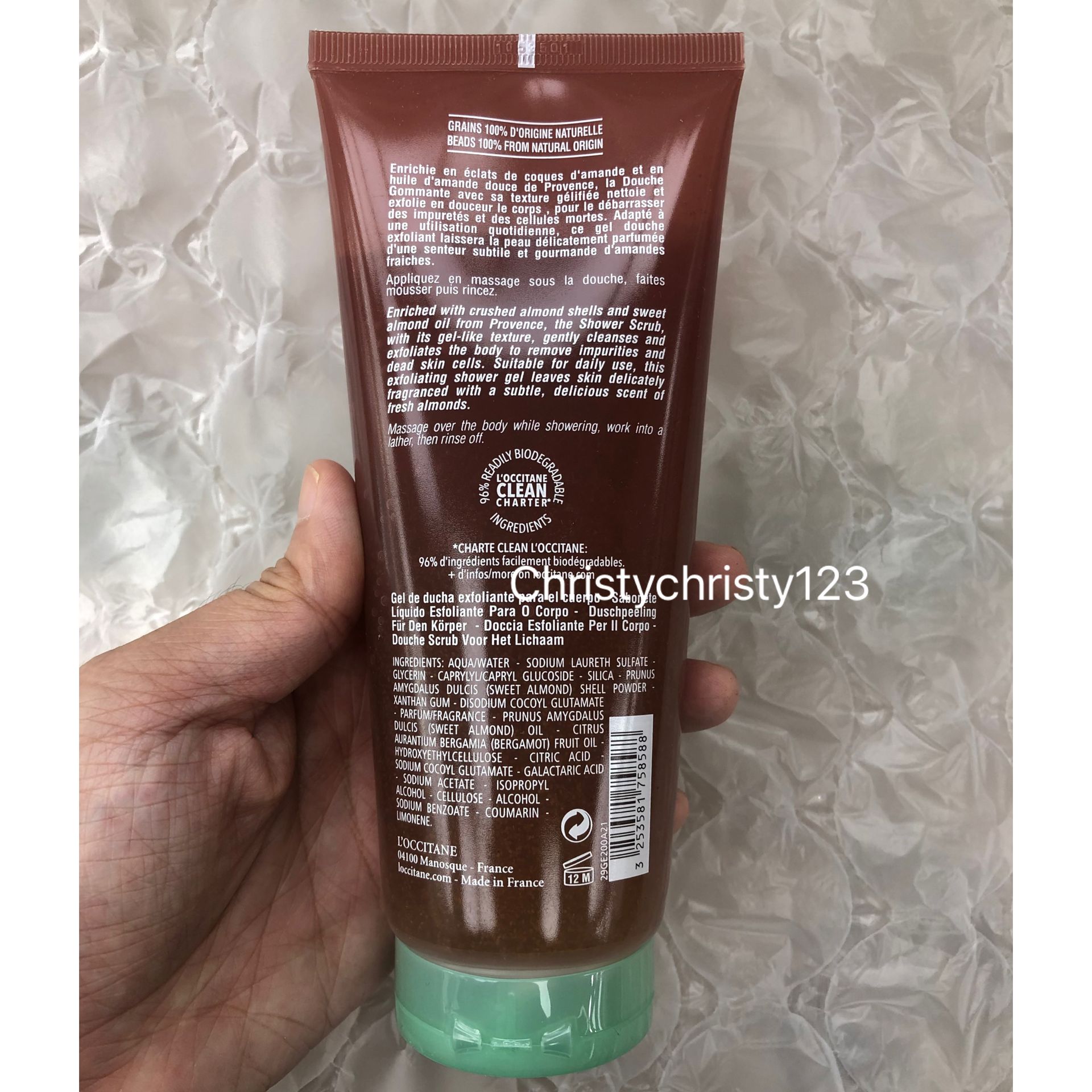 產地 : 法國 (Made in France) 品名 : LOCCITANE 杏仁磨砂沐浴啫喱 (L'OCCITANE Almond Shower Scrub) 容量 : 200 ml 產品描述 : ** 來自天然杏殼微粒能溫和去除角質,幫助肌膚更有效地吸收隨後使用的緊膚產品 ** 清爽的沐浴啫喱配方,蘊含天然杏仁油及植物潔淨配方,迅速在肌膚 上形成濃郁泡沫 🌟訂購產品前,歡迎 WhatsApp 6053 7862 或致電客服 2446 0981 查詢貨存,謝謝🙏 🌟