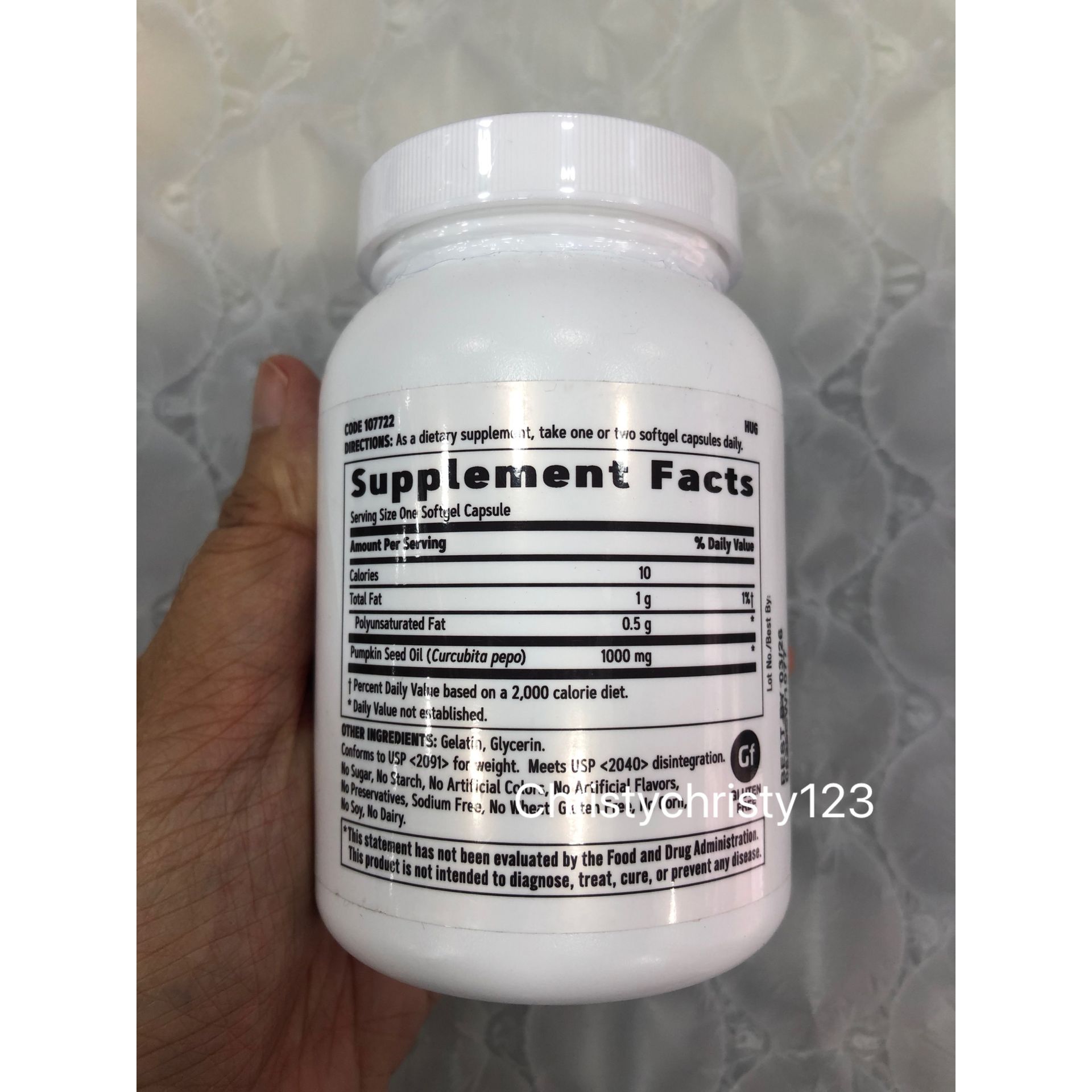 有效日期 : 2026 年 03月 產地 : 美國 (Made in U.S.A.) 品名 : GNC 南瓜籽油1000MG (GNC Pumpkin Seed Oil Softgels) 容量 : 100 粒 產品描述 : ** 有助增強男士活力及精力 ** 富含鋅元素, 提高男士精子質量 ** 有效改善男士前列腺增生,前列腺炎,緩解尿頻,尿急,尿等待 ** 抑制DHT,改善男性中年脫髮 ** 富含多元不飽和脂肪酸,維護心血管健康 ** 富含鉻元素,天然血糖調理師 ** 天然成分含鋅及多元不飽和脂肪酸,調節機能 使用方法 : ** 作為膳食補充劑,每日1-2粒軟膠囊 ** 為達到最佳效果,建議每日食用 🌟訂購產品前,歡迎 WhatsApp 6053 7862 或致電客服 2446 0981 查詢貨存,謝謝🙏 🌟