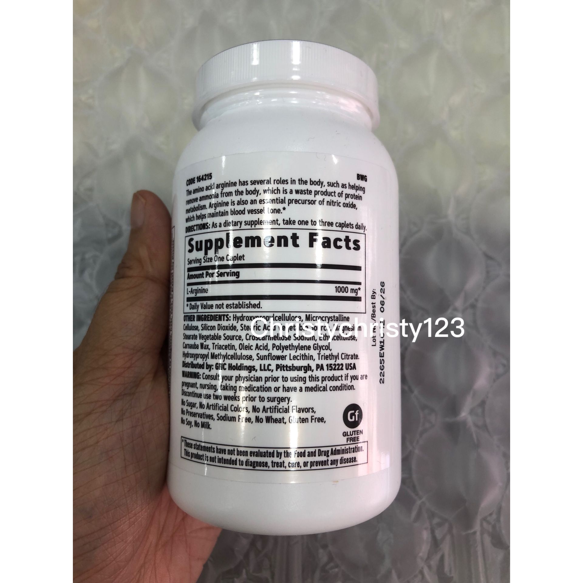 有效日期 : 2026年 06月 產地 : 美國 (Made in U.S.A.) 品名 : GNC 男士保健左旋精胺酸1000MG (GNC L-Arginine 1000MG) 容量 : 90 粒 產品描述 : ** 增強體力及男仕持久力, 助孕 ** 精胺酸同時被多項醫學臨床研究證實具有改善性功能障礙及有效提高精子數量及活動力 ** 有助增加血管擴張效力,更多養分和氧氣進入肌肉,為肌肉注入能量 ** 幫助身體製造肌酸及增加肌肉重量 ** 有助體重控制, 建造肌肉組織及強健骨骼 ** 增強免疫功能 ** 具有抗氧化劑的特性 使用方法 : ** 每日 1- 3粒,隨餐或餐後溫水吞服 🌟訂購產品前,歡迎 WhatsApp 6053 7862 或致電客服 2446 0981 查詢貨存,謝謝🙏 🌟