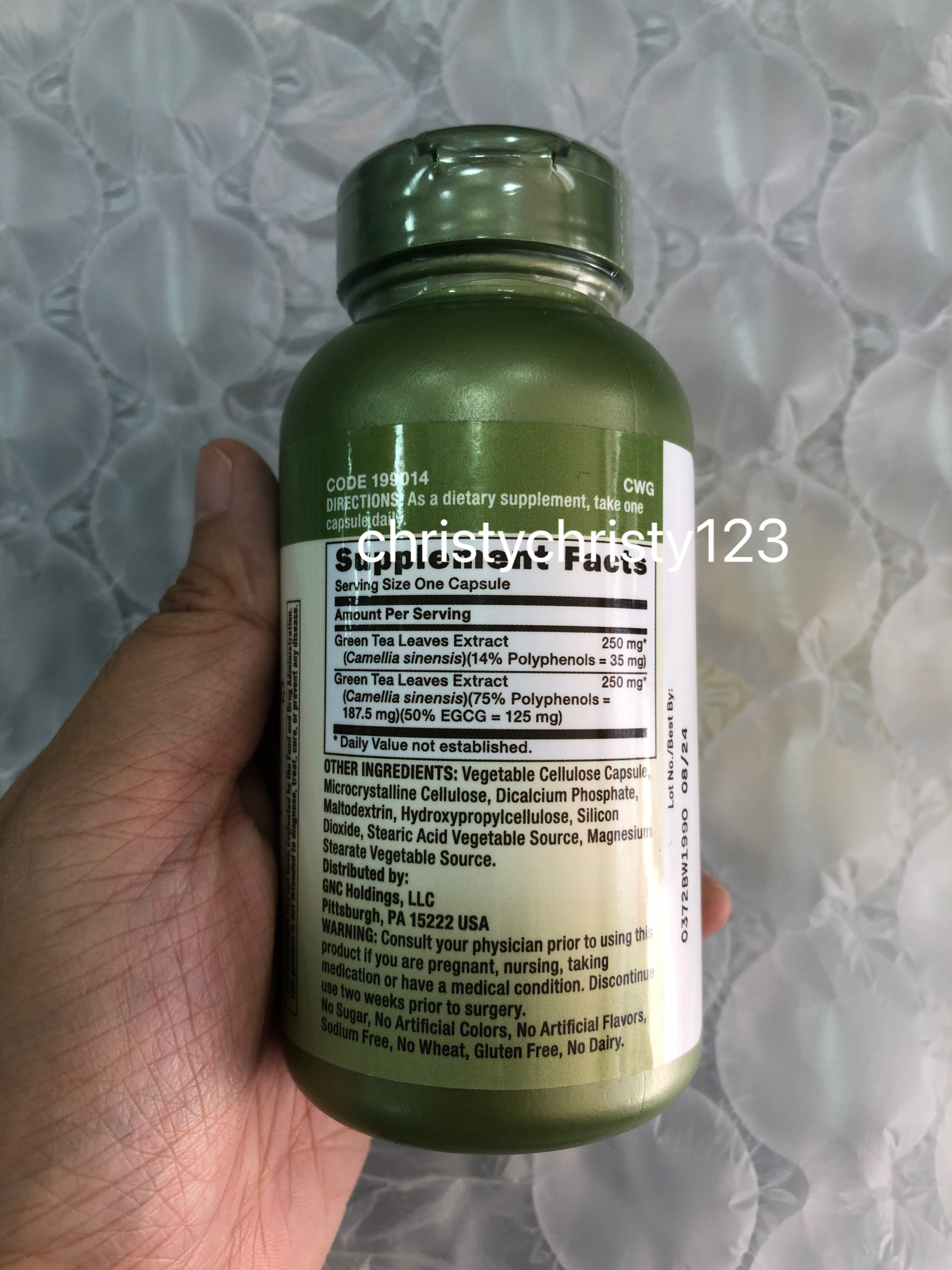 產地 : 美國 (Made in U.S.A.) 品名 : GNC 綠茶精華 500MG (GNC Green Tea Complex) 容量 : 100 粒 產品描述 : ** 天然抗氧化 ** 有助保護細胞免受自由基傷害 使用方法 : ** 每日1次,每次1粒 🌟訂購產品前,歡迎 WhatsApp 6053 7862 或致電客服 2446 0981 查詢貨存,謝謝🙏