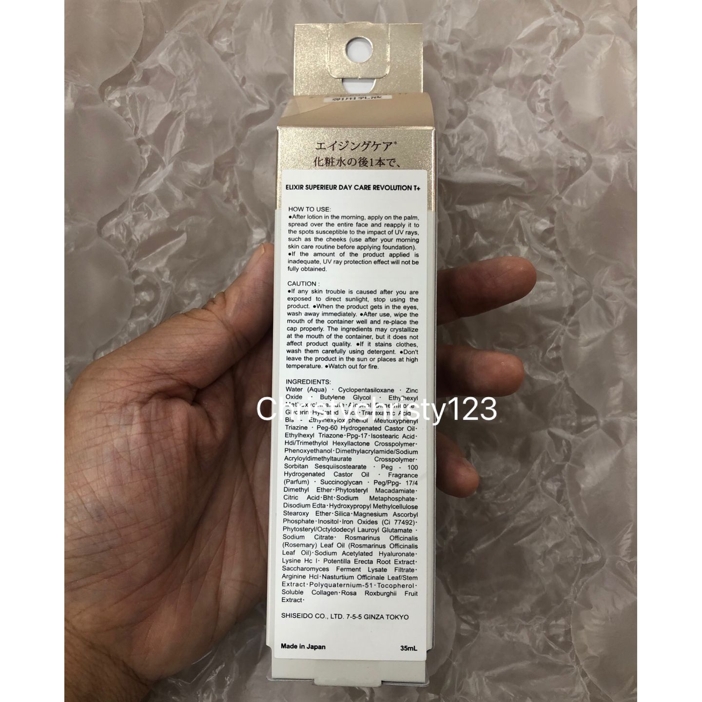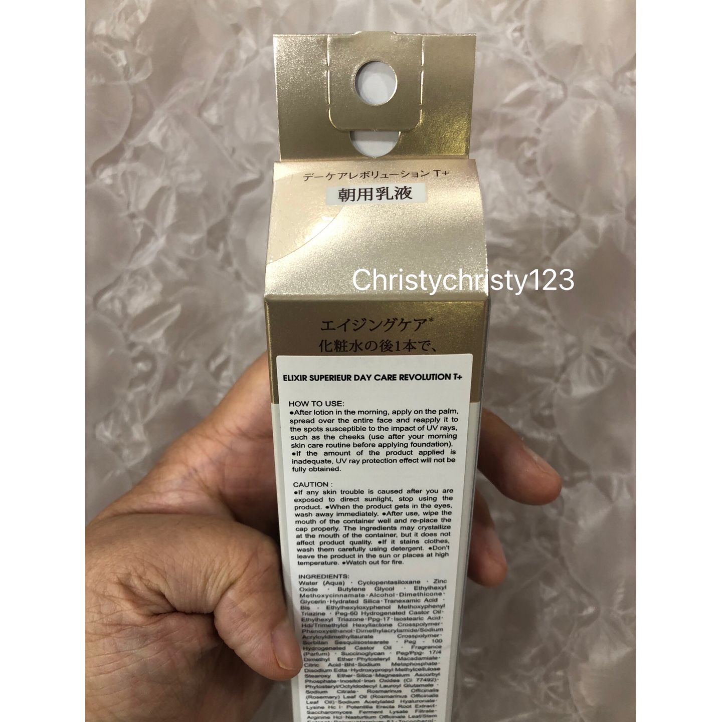有效日期: 2024年 08月 產地 : 日本 (Made in Japan) 品名 : 資生堂 Elixir 日間防曬乳液 SPF50+ (ELIXIR Day Care Revolution) 容量 : 35 ml 產品描述 : ** 具有SPF 50+ PA++++高防曬係數,兼具乳液、粧前乳、防曬乳三重日間美容保養功效之日用隔離乳 ** 一早開始,化妝水之後,使用這一隻,抵禦色斑和乾燥的美容乳液 ** 滋潤度高而且唔黏笠, 後續上妝會更加貼服 ** 質地是比較易推開延展性高的乳液狀, 有微微提亮效果但不假白, 容易被肌膚吸收 ** 金色管身為保濕款, 較為適合乾性至中性肌膚使用 使用方法 : **早晨保養程序化粧水之後,取出約0.5mL的量,均勻塗抹於全臉 ** 針對容易受到紫外線照射的部位,可重疊塗擦,增加防禦效果 🌟訂購產品前,歡迎 WhatsApp 6053 7862 或致電客服 2446 0981 查詢貨存,謝謝🙏 🌟