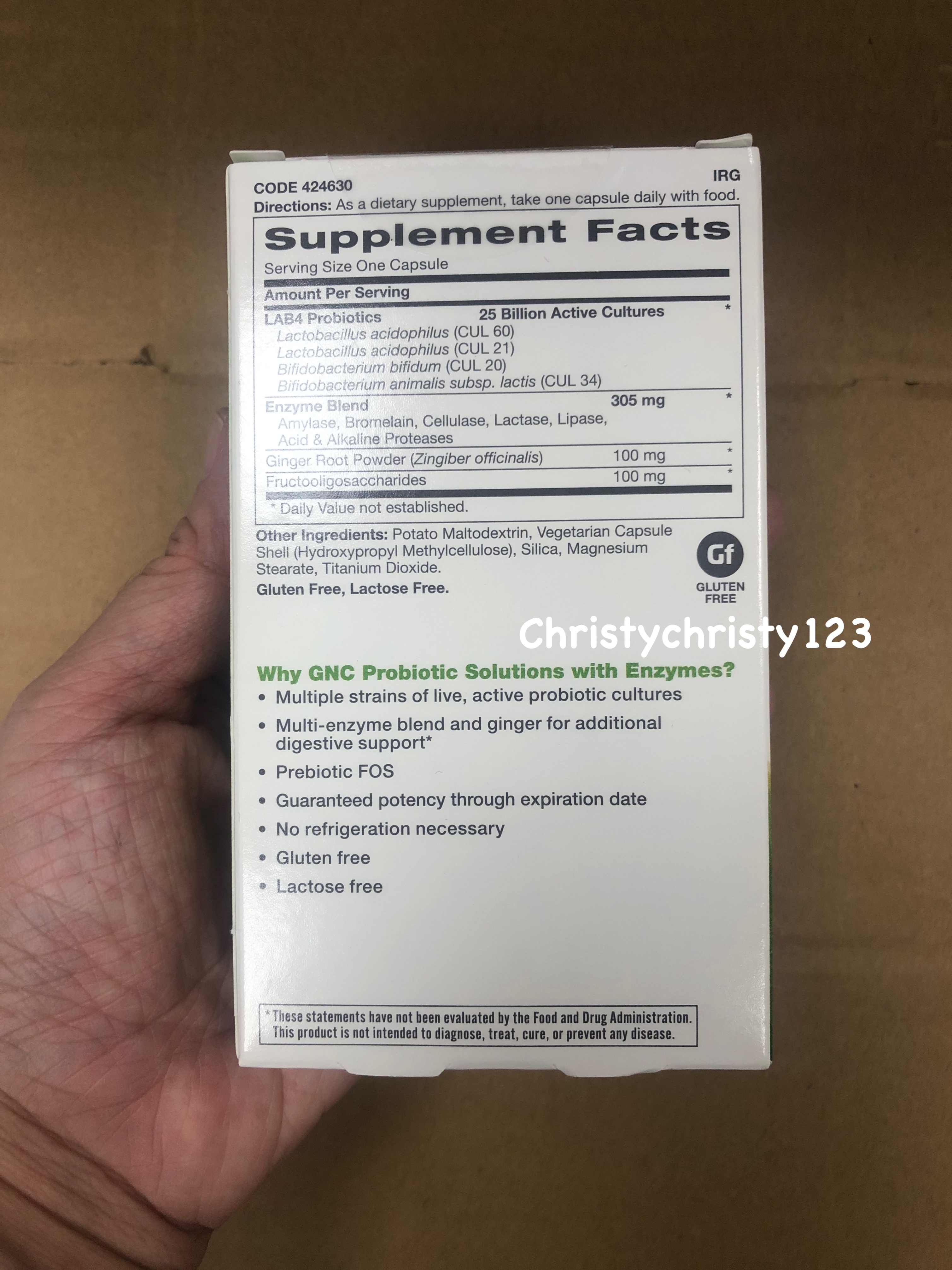 產地 : 美國 (Made in U.S.A.) 品名 : GNC 酵素+益生菌 250億 (淨腸配方) (GNC Probiotic Solutions With Enzymes 25 Billion CFUs) 容量 : 30 粒 產品描述 : ** 含250億科研Lab4益生菌 ** 添加7種超級酵素有助提升代謝 ** 淨腸排宿便,紓緩胃氣腹脹 ** 添加100毫克生薑,針對各種胃部不適 ** 添加益生元,促進及延長益生菌在腸道的活性 ** 採用獨特鎖菌技術StabilityMax及TriPhase,保證益菌數量,更能抵抗胃酸,直達腸道吸收 使用方法 : ** 作為膳食補充劑,每天隨餐服用 1顆膠囊 🌟訂購產品前,歡迎 WhatsApp 6053 7862 或致電客服 2446 0981 查詢貨存,謝謝🙏 🌟