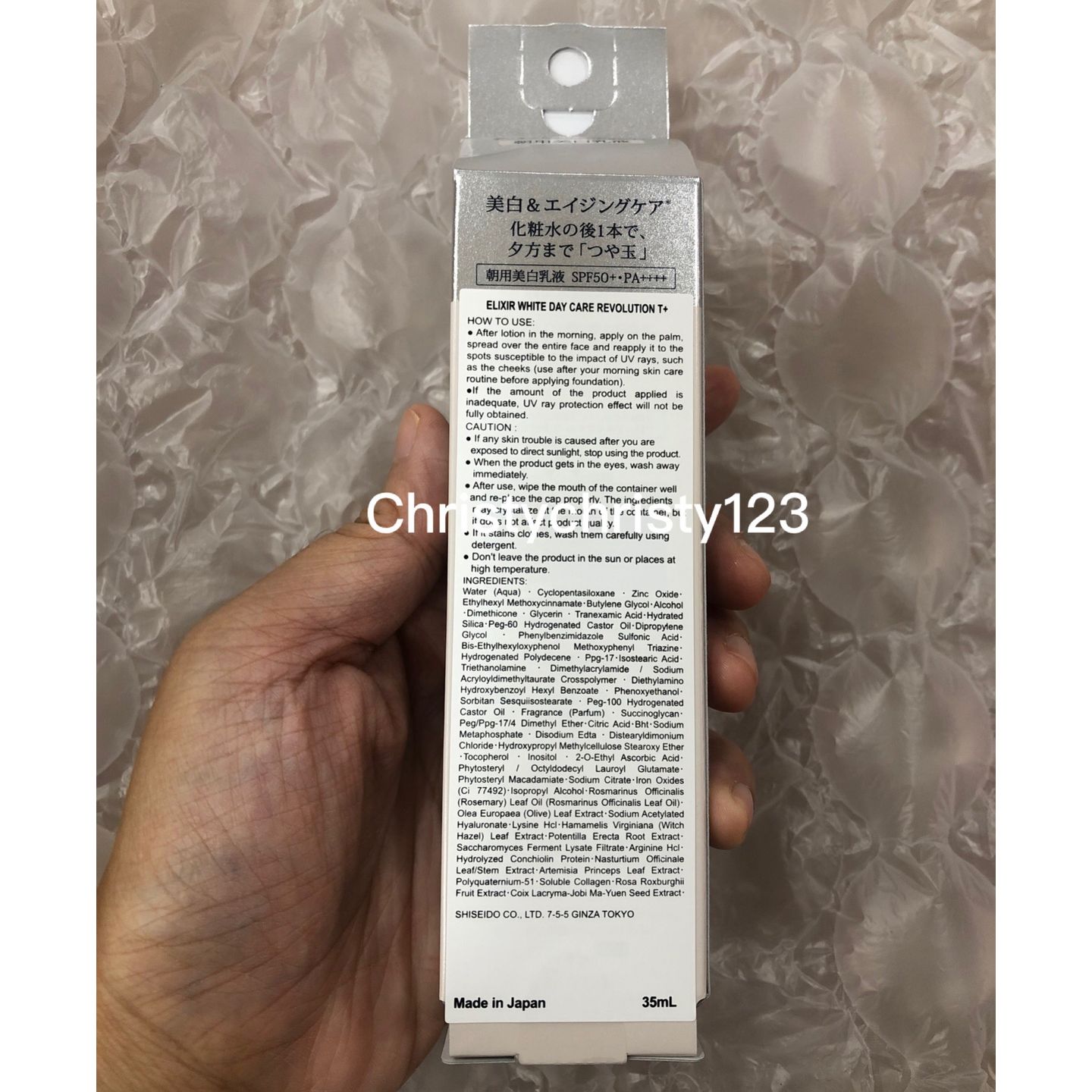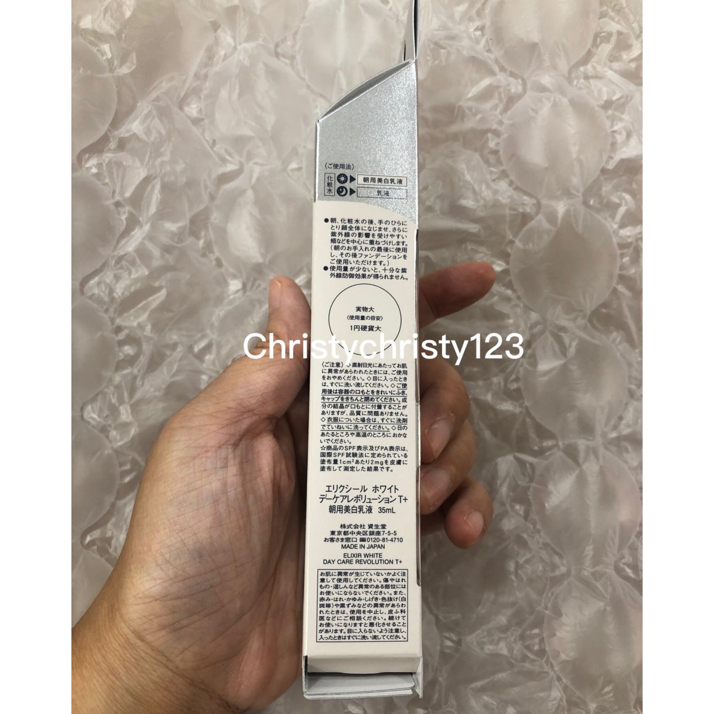 有效日期: 2024年 08月 產地 : 日本 (Made in Japan) 品名 : Elixir 美白保濕防曬乳液 SPF50+ (ELIXIR Whitening Day Care Revolution) 容量 : 35 ml 產品描述 : ** 具有SPF 50+ PA++++高防曬係數,兼具乳液、粧前乳、防曬乳三重日間美容保養功效之日用隔離乳 ** 一早開始,化妝水之後,使用這一隻,抵禦色斑和乾燥的美容乳液 ** 富含滋養成分,抵禦細紋滋生,水潤肌膚從早持續傍晚 ** 特效的EIGINK-X成分配合回復肌膚彈性動力 ** CE成熟保濕成分使角質潤澤,增強肌膚對外界環境刺激的抵抗能力 ** 針對容易受到紫外線照射的部位,可重疊塗擦,增加防禦效果 ** 美容液的質地完全和乳液一樣,而且立即被皮膚吸收,不會覺得油膩,也不會塗抹不均勻 使用方法 : ** 早上洗完臉,塗完化妝水之後,在手心取一円大小的乳液,塗在額頭,鼻子,兩頰,下巴5個位置,均勻抹開直至吸收即可 ** 特別注意兩頰的位置,因為很容易受到紫外線的傷害,可以稍微多塗一些 🌟訂購產品前,歡迎 WhatsApp 6053 7862 或致電客服 2446 0981 查詢貨存,謝謝🙏 🌟