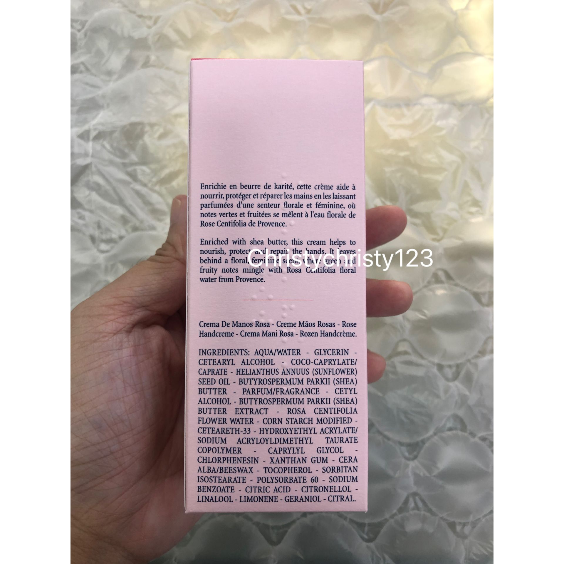 有效日期 : 2024 年 05月 產地 : 法國 (Made in France) 品名 : LOCCITANE 玫瑰潤手霜 (L'OCCITANE Rose Hand Cream) 容量 : 75 ml 產品描述 : ** 配方含豐富乳木果油、玫瑰精華。帶來更強效保濕功效,同時令指甲更強韌。用後雙手柔軟、潤澤、嫩滑,帶有淡淡花香 使用方法: ** 每日在需要時隨時使用 🌟訂購產品前,歡迎 WhatsApp 6053 7862 或致電客服 2446 0981 查詢貨存,謝謝🙏 🌟