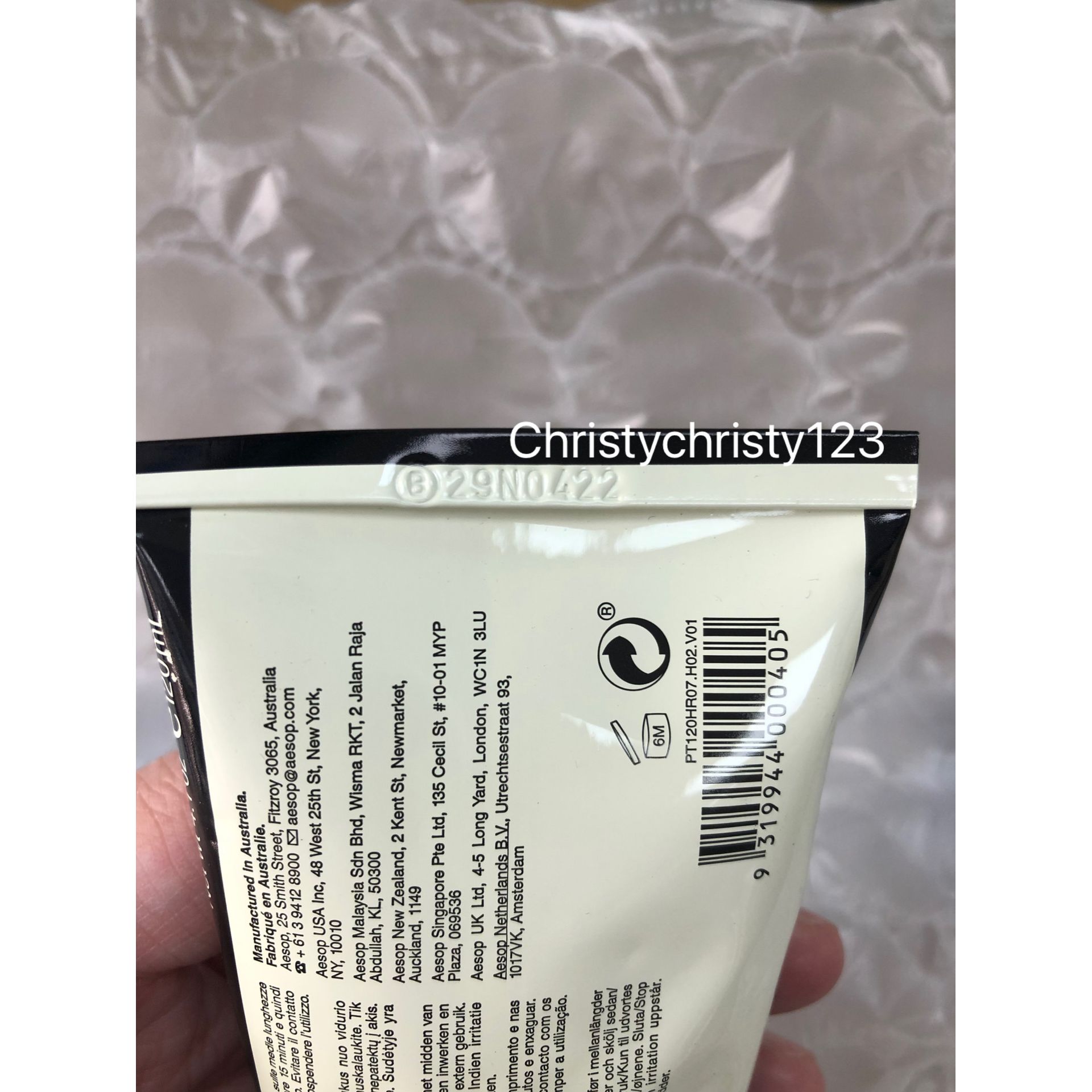 有效日期 : 2026年 10月 產地 : 澳洲 (Made in Australia) 品名 : Aesop 玫瑰滋潤護髮膜 (Aesop Rose Hair & Scalp Moisturising Masque) 容量 : 120 ml 產品描述 : ** 深入潤髮護理有助頭髮回復細軟,帶來活力光澤,同時舒緩乾燥及有頭屑的頭皮 ** 深層滋養絲滑乳霜, 適用於中性至乾燥、脆弱及經化學處理的頭髮 ** 含有鮮花、溫暖、樹木清香 ** 主要成分: 玫瑰花瓣、β-胡蘿蔔素、薰衣草 使用方法 : ** 洗淨並以毛巾拭乾頭髮後,取出適量於掌心並塗遍中間至髮尾部分 ** 可使用寬齒梳以確保塗抹均勻 ** 靜待二十分鐘或以上,然後以清水徹底洗淨 🌟訂購產品前,歡迎 WhatsApp 6053 7862 或致電客服 2446 0981 查詢貨存,謝謝🙏 🌟
