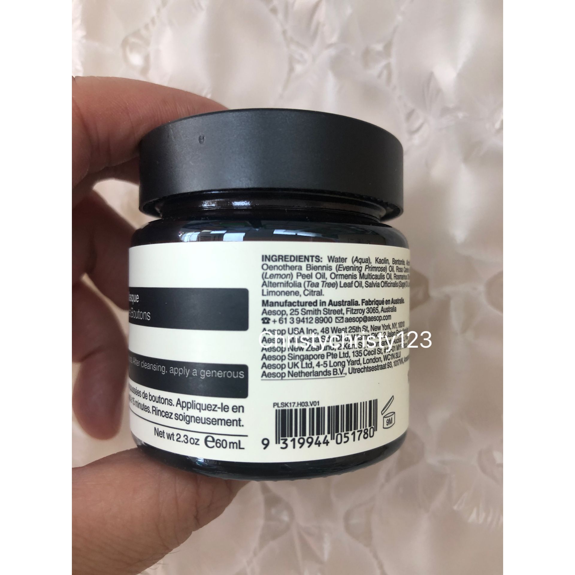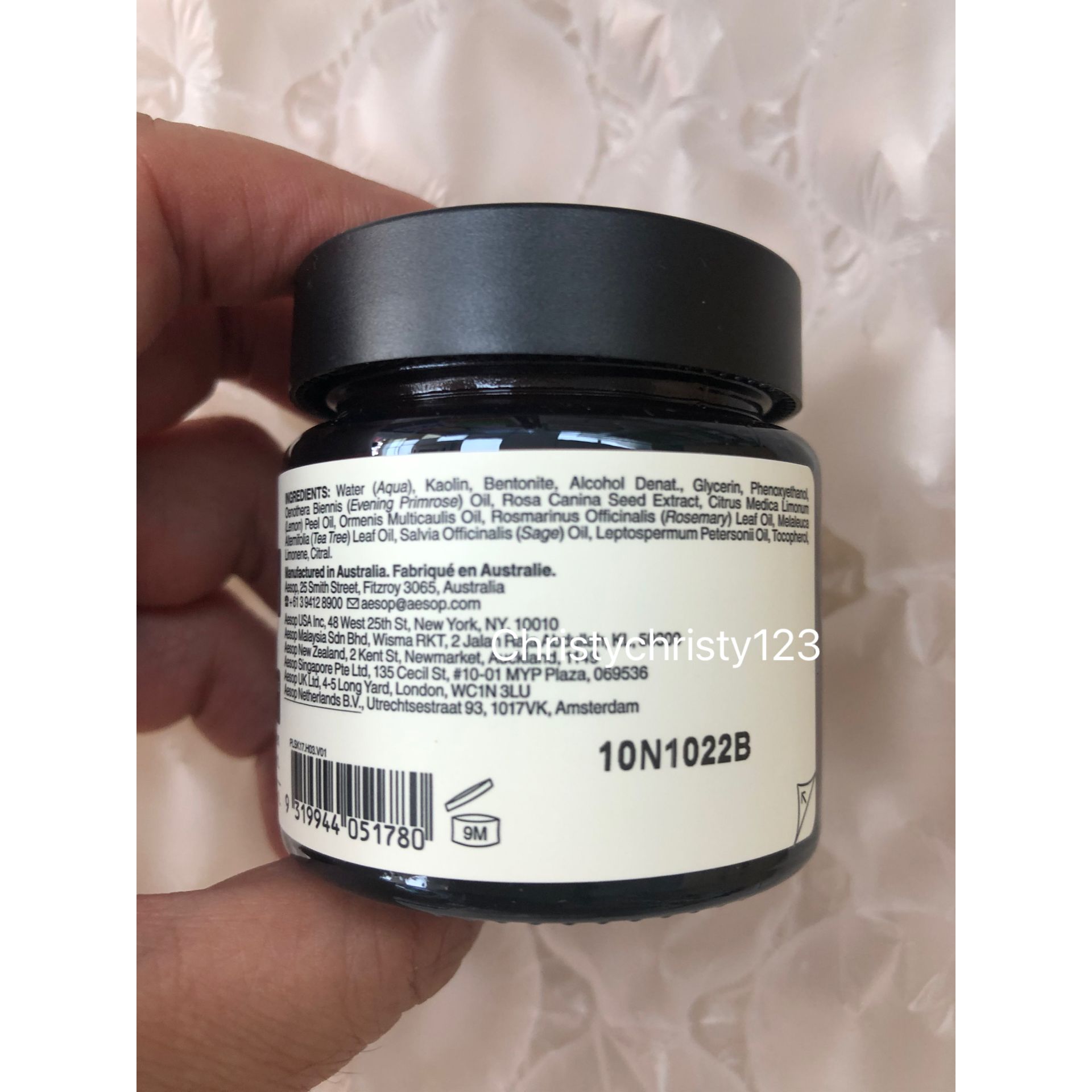 有效日期 : 2026年 10月 產地 : 澳洲 (Made in Australia) 品名 : Aesop 甘菊去瑕敷面膜 (Aesop Chamomile Concentrate Anti-Blemish Masque) 容量 : 60 ml 產品描述 : ** 蘊含草本植物潔淨配方的黏土狀收斂面膜,適用於暗瘡位置或問題肌膚 ** 適用於暗瘡、問題肌膚 ** 含有洋甘菊、茶树叶、晚樱草, 有效深層潔淨, 舒緩鎮靜 ** 質地如柔軟清涼的黏土, 含草本芳香 使用方法 : ** 每星期兩次,塗抹薄層於已潔淨的皮膚或暗瘡位置上 ** 十五分鐘後徹底洗淨 🌟訂購產品前,歡迎 WhatsApp 6053 7862 或致電客服 2446 0981 查詢貨存,謝謝🙏 🌟