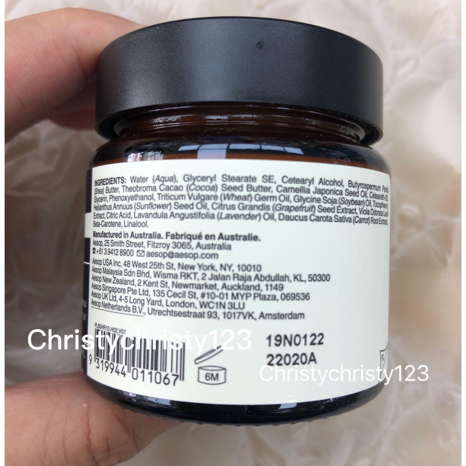 有效日期 : 2025 年 01月 產地 : 澳洲 (Made in Australia) 品名 : Aesop 紫羅蘭護髮造型霜 (Aesop Violet Leaf Hair Balm) 容量 : 60 ml 產品描述 : ** 造型霜蘊含滋潤的果油及保濕的堅果油萃取物,有效潤髮,造型的同時亦能令難以打理的頭髮回復柔順 ** 適用於凌亂、粗糙或乾性髮質 ** 絲滑乳霜, 蘊含清草香氣、土壤及溫暖氣息 ** 主要成分: 山茶核仁、胡蘿蔔、薰衣草 使用方法 : ** 用半茶匙分量 ** 塗抹於已洗淨及微濕的髮尾,塑造出理想的造型後可自然風乾或以風筒烘乾 ** 又或於乾髮使用,塑造髮尾的效果及撫平翹起的髮絲 🌟訂購產品前,歡迎 WhatsApp 6053 7862 或致電客服 2446 0981 查詢貨存,謝謝🙏 🌟