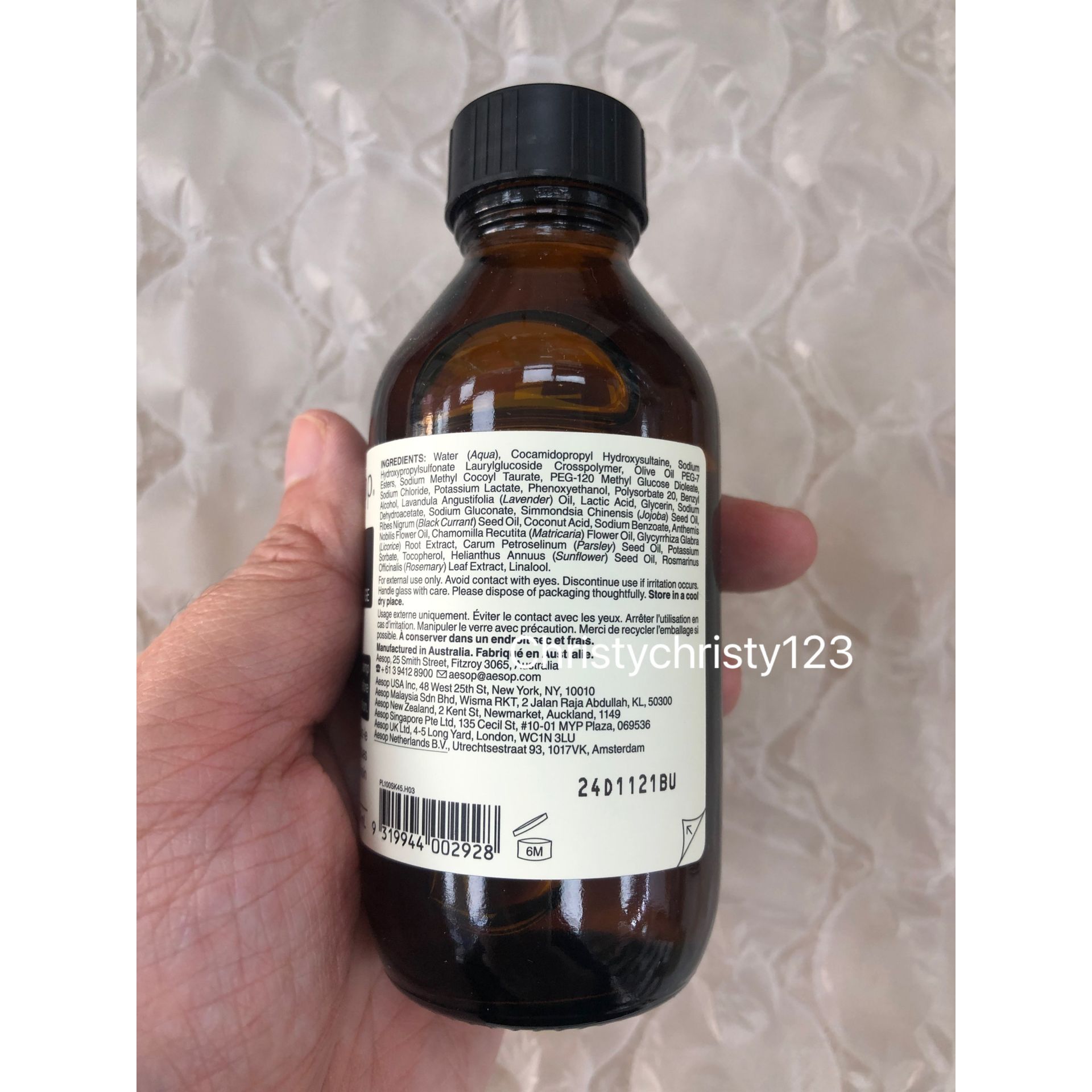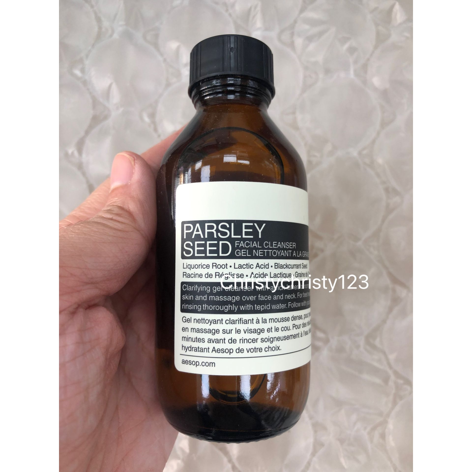 產地 : 澳洲 (Made in Australia) 品名 : Aesop 香芹籽潔面露 (Aesop Parsley Seed Facial Cleanser) 容量 : 100 ml 產品描述 : ** 純淨配方可去除表面的雜質,乳酸成分有效溫和去角質,尤其適合居住在受污染城市的人士,維持肌膚乾淨衛生 ** 溫和泡沫透明凝露, 含有草本芳香、花朵芬香、清新香味 ** 主要成分: 甘草根、乳酸、黑醋栗籽 ** 膚質感受, 純淨柔滑,溫和潔膚 ** 適用於中性、混合性或問題皮膚 使用方法 : ** 早晚使用,取適量於潔淨的掌心,搓至起泡後按摩全臉及頸部,等待一至兩分鐘後以溫水徹底洗淨 🌟訂購產品前,歡迎 WhatsApp 6053 7862 或致電客服 2446 0981 查詢貨存,謝謝🙏 🌟