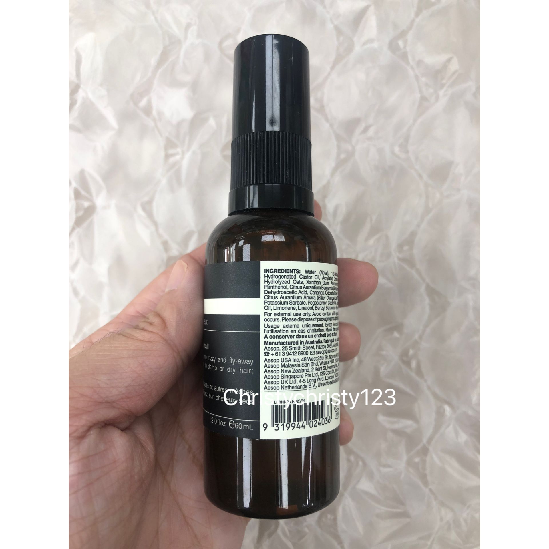 有效日期 : 2026年 06月 產地 : 澳洲 (Made in Australia) 品名 : Aesop Tame Hair Serum 撫躁順髮精華 容量 : 60 ml 產品描述 : ** 質地輕盈的配方,讓髮絲保持柔順平滑。解決毛躁困擾,撫順難以整理的髮絲,同時不黏膩的質地不會造成頭髮負擔 ** 適用於大多數髮質頭髮長度;毛躁或難以整理的髮絲 ** 含有綠意、柑橘、花香 ** 主要成分 :苦橙.佛手柑.廣藿香 使用方法 : ** 按壓2至5下, 取適量塗抹於微濕或全乾的髮絲上,接著以梳子輔助並塑造成理想的造型 ** 洗髮時即可將產品沖洗乾淨 🌟訂購產品前,歡迎 WhatsApp 6053 7862 或致電客服 2446 0981 查詢貨存,謝謝🙏 🌟