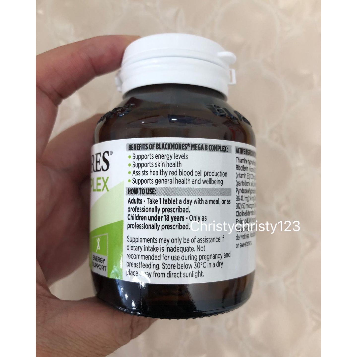 產地 : 澳洲 (Made in Australia) 品名 : Blackmores 複合維生素 B (Blackmores Mega Complex B Tab) 容量 : 75 片 產品描述 : ** 複合維生素B有助補充因體力勞動而流失的營養 ** 有助身體從食物中製造能量,維持神經系統正常運作,亦有助面對壓力 ** 代謝碳水化合物、蛋白質和脂肪的過程中,維他命B雜作為輔酵素,產生能量 ** 神經系統的正常運作,亦需依靠維他命B雜以製造荷爾蒙和神經遞質 使用方法 : ** 成人:每日一片,進餐時服 ** 十二歲以下兒童, 不建議服用 🌟訂購產品前,歡迎 WhatsApp 6053 7862 或致電客服 2446 0981 查詢貨存,謝謝🙏 🌟