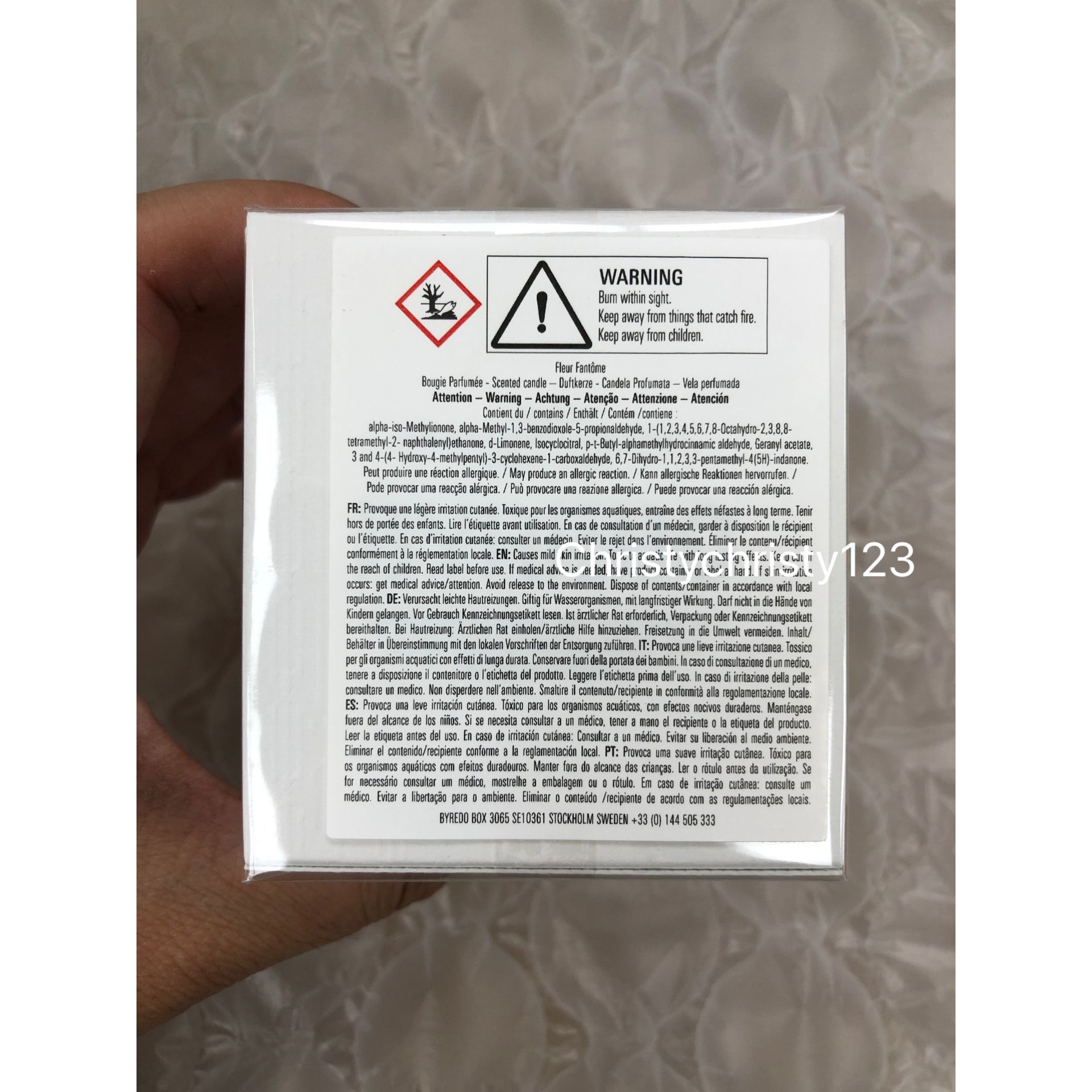 產地 : 法國 (Made in France) 品名 : Byredo Fleur Fantome Fragranced Candle 叢花魅影香氛蠟燭 容量 : 70 g 產品描述 : ** 這款香氛蠟燭的香氣是為了頌讚鬱金香 ─ 不因蒸餾就輕易留下香味的花朵 ** 味道就是非常有質感的花香,放在房間就有迷人的香氣,真的會讓人一走進臥室就覺得好香 ** 前調:大黃、檸檬苦橙葉 ** 中調:紫羅蘭葉、鬱金香 ** 後調:白松香、纈草、麂皮 使用方法 : ** 香氛蠟燭燃燒時間約60小時。為了獲得更好的燃燒體驗,請在每次使用前修剪燭芯 ** 避免小孩和寵物接觸 🌟訂購產品前,歡迎 WhatsApp 6053 7862 或致電客服 2446 0981 查詢貨存,謝謝🙏 🌟