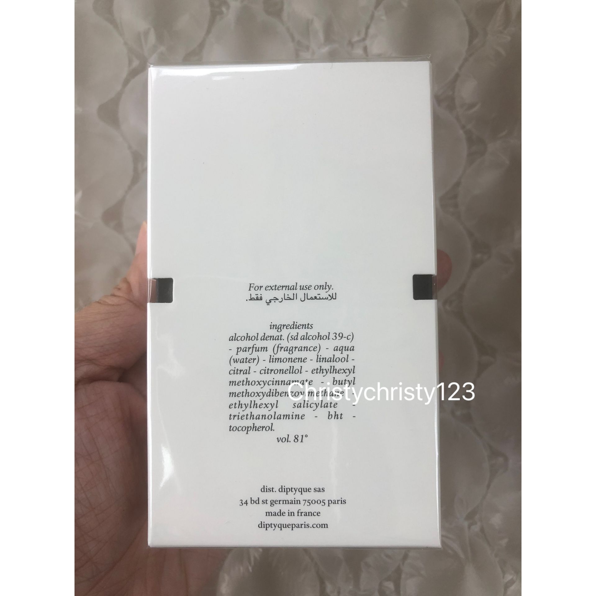 產地 : 法國 (Made in France) 品名 : Diptyque Eau Duelle Eau De Toilette 杜耶爾淡香水 容量 : 50 ml 產品描述 : ** 這是向旅遊和香草致意之作, 以香草為主調的香氣展現不同的魅力,除了辛香,更糅合了新的香調,包括明亮而迷人的菖蒲,以及一抹深邃煙燻的莎草氣息 ** 來自馬達加斯加的波旁香草穿越時空,在光與暗之間展現個性 ** 香調: 東方辛香調 ** 前調:粉紅胡椒、杜松子、小荳蔻、柏木 ** 中調:乳香、菖蒲、錫蘭紅茶 ** 基調:香草、岩蘭草、香附子、龍涎香 使用方法: ** 直接噴在脈搏部位,例如頸、手腕內側及耳背位置 🌟訂購產品前,歡迎 WhatsApp 6053 7862 或致電客服 2446 0981 查詢貨存,謝謝🙏 🌟