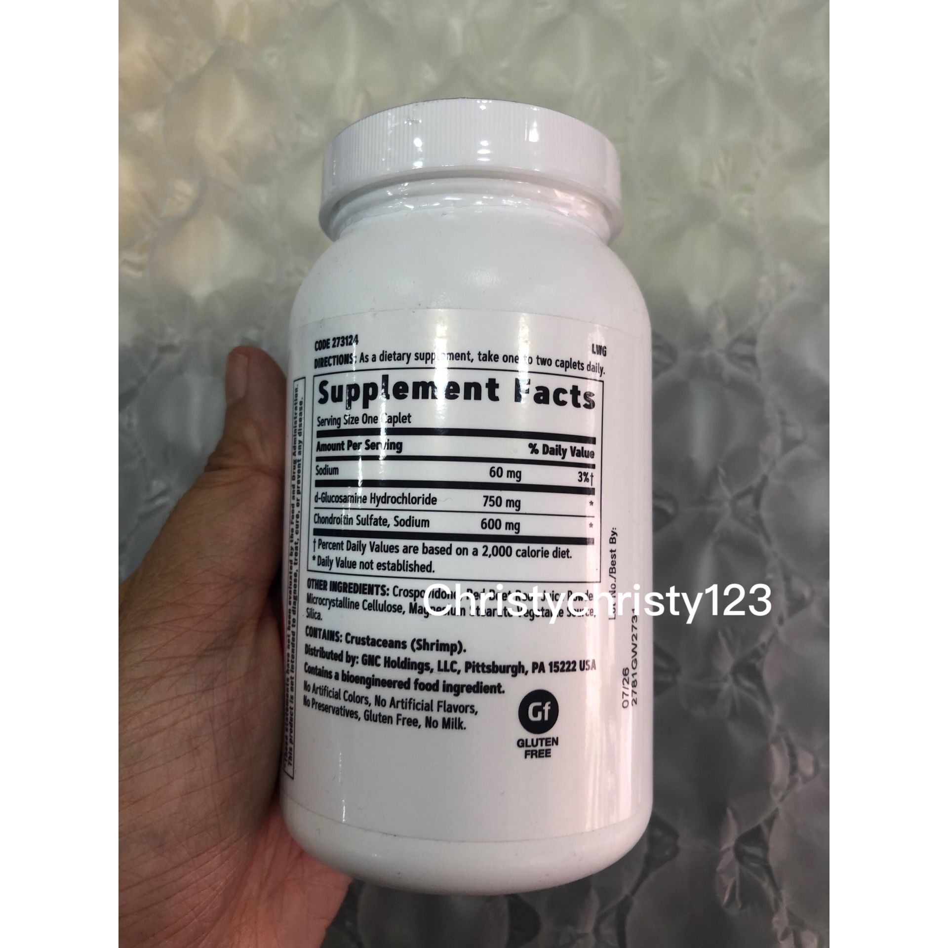 有效日期 : 2027年 11月 產地 : 美國 (Made in U.S.A.) 品名 : GNC 高效特強關節 1+1 (GNC Triple Strength Glucosamine Chondroitin) 容量 : 120 粒 產品描述 : ** 有助修補軟骨 潤滑關節 ** 每粒含750毫克葡萄糖胺及600毫克軟骨素,雙重強效 ** 紓緩關節僵硬,提升靈活度 ** 適合關節僵硬不靈活人士 使用方法 : ** 每日 1-2粒 🌟訂購產品前,歡迎 WhatsApp 6053 7862 或致電客服 2446 0981 查詢貨存,謝謝🙏 🌟