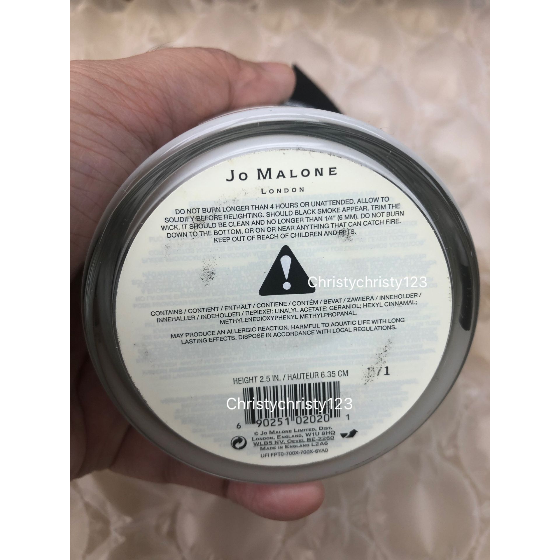 產地 : 英國 (Made in England) 品名 : Jo Malone 英國梨與小蒼蘭香氛工藝蠟燭 (Jo Malone English Pear & Freesia Home Candle) 容量 : 200 g 產品描述 : ** 彷彿集結秋天的氣息。 猶如新鮮採摘的清新梨子香氣,搭配白色小蒼蘭所綻放的花香,佐以琥珀、廣藿香與木質香調的柔和芳香。 擁有奢華的金色光澤 ** 可以提振精神、可以安定心情或是為家中增添一股奢華香氣 ** 以奢華的馥郁香氛工藝蠟燭轉變居室氛圍。 香氛蠟燭的燃燒時間為 45小時,附有上蓋 ** 香調:初調:威廉梨 ; 中調:小蒼蘭; 基調:廣藿香 使用方法: ** 為了達到最佳使用效果並避免蠟燭中央出現凹陷,請燃點至蠟燭表面完全融化, 熄滅後先讓蠟燭凝固後再重新使用 ** 在兩次使用之間請修剪燭芯,確保其長度不超過¼英寸/ 6毫米,以及保護蠟燭表面 ** 一次的燃燒時間不應超過四小時 ** 請放於兒童或寵物觸摸不到的地方 🌟訂購產品前,歡迎 WhatsApp 6053 7862 或致電客服 2446 0981 查詢貨存,謝謝🙏 🌟