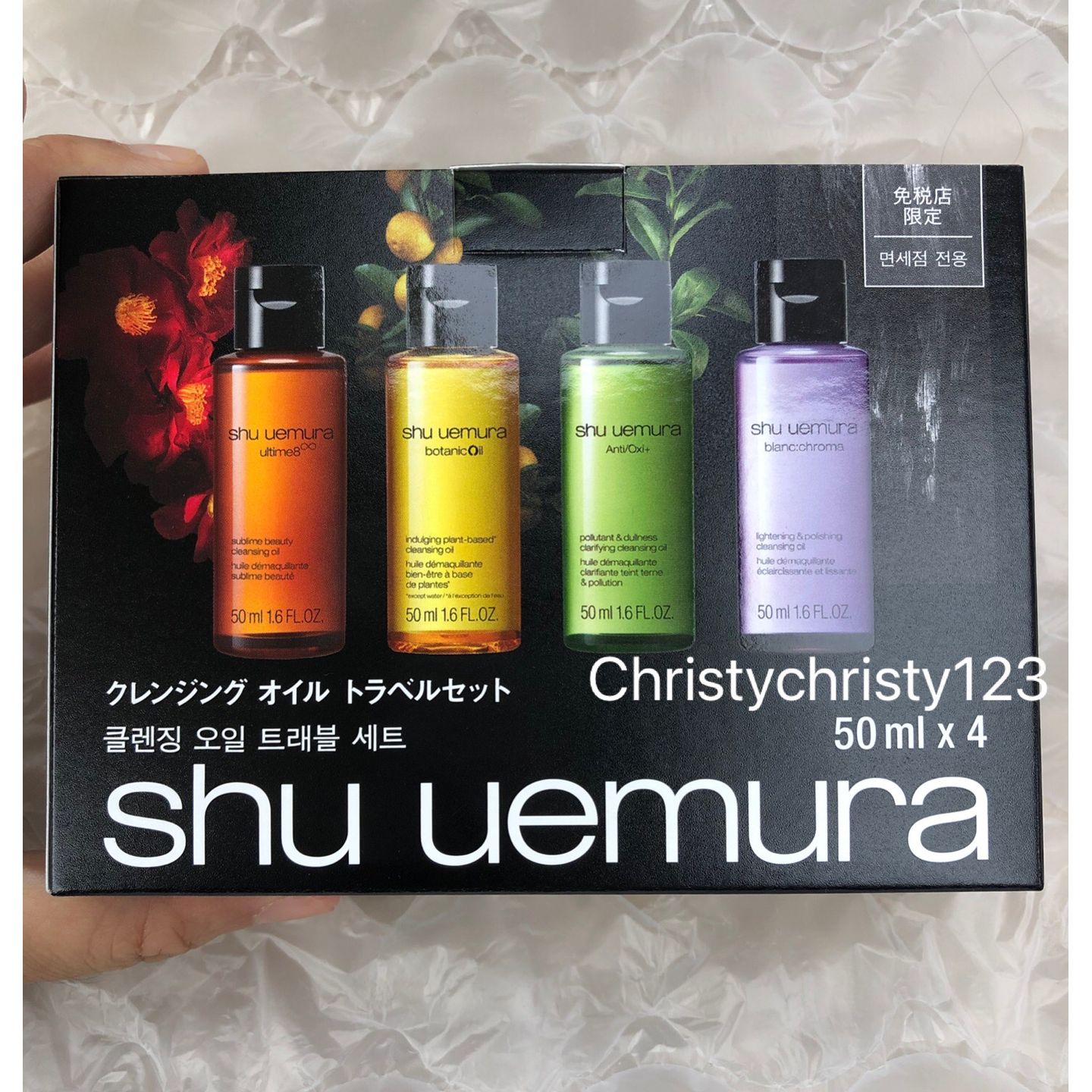 Shu Uemura 植村秀 潔顏油旅遊套裝 4 件套- 50ml X 4 (Ultime8 黃金琥珀養膚潔顏油 50ml + Anti/Oxi+ 綠茶抗污染潔顏油 50ml + Botanicoil 植物性潔顏油 50ml + Blanc: Chroma 淨透煥顔潔顔油 50ml ) ~到期日: 2024年 04月